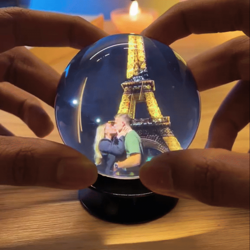 The Memory Sphere is a magical ornament that plays your favorite photos and videos — turning them into a living memory.
